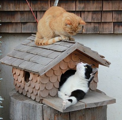 Um zu verhindern, dass Vögel ihre Lebensräume meiden, seltener ihre Jungen füttern und durch ihre Warnrufe Rabenvögel anlocken, muss das Vogelhaus gut vor Katzen geschützt sein.